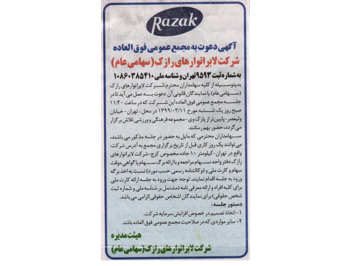 بدینوسیله مفتخریم اعلام نماییم آزمایشگاه کنترل شرکت لابراتورهای رازک موفق به تمدید پروانه بهره برداری آزمایشگاه مجاز تولیدی ( آکرودیته ) به مدت یکسال گردید . ادامه مطلبهفدهمین کنگره پزشکان عمومی با حضور شرکت داروسازی رازک